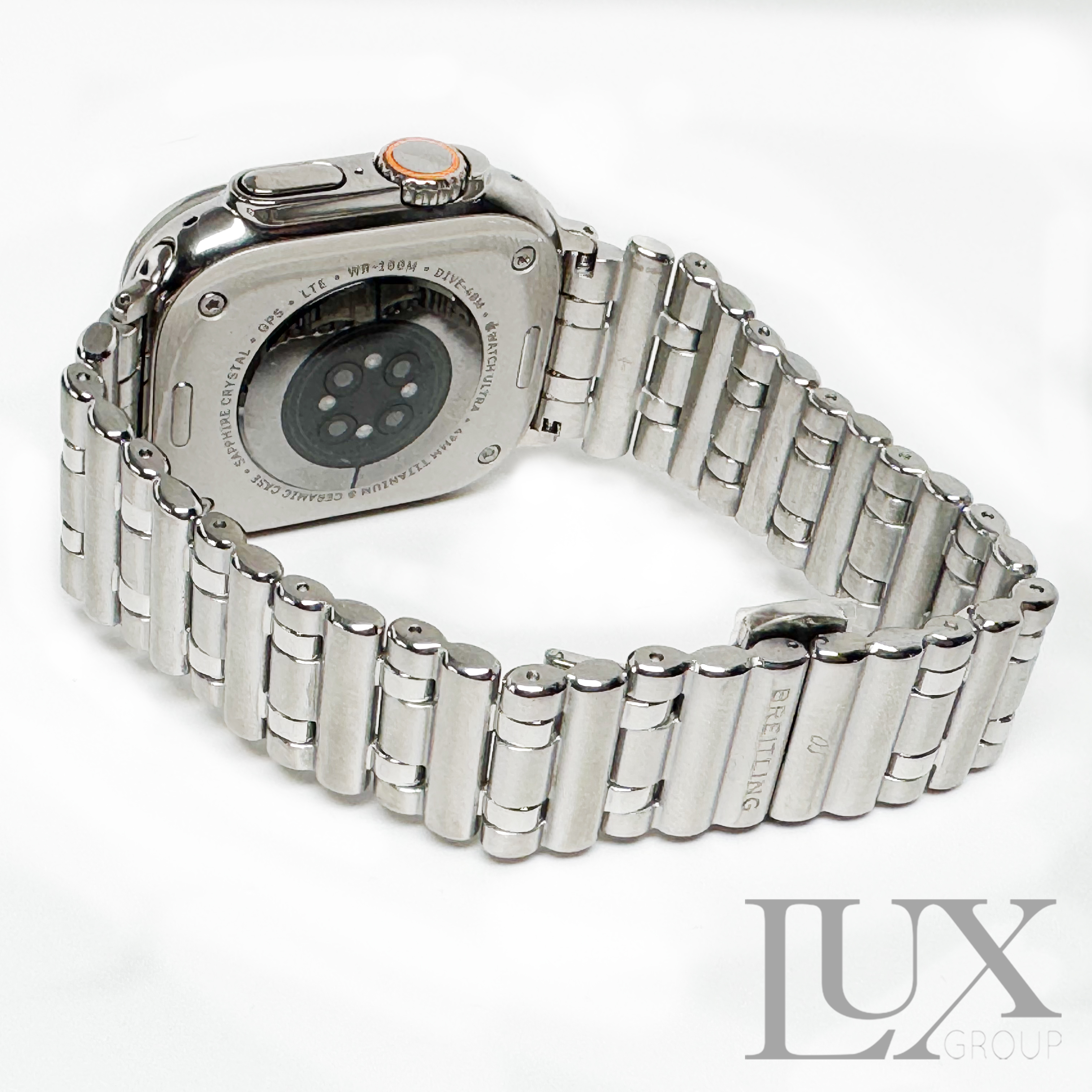 Polished Apple Watch Ultra 2 49mm with Breitling 23mm Mesh Band